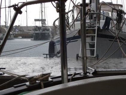 au bateau à 8h30. Taud en lambeaux et je pataugeais dans l'eau