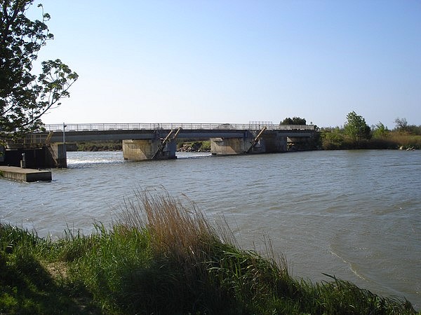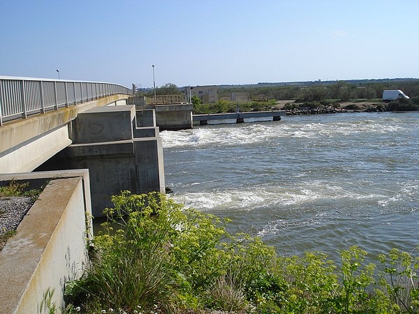 Un écluse permet de passer le barrage et de rejoindre le canal de la robine |