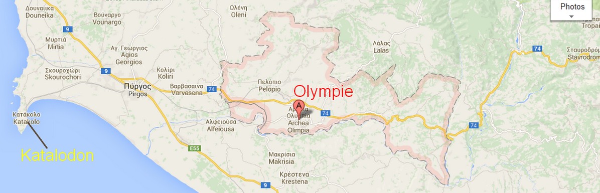 Katalodon doit être distante d'Olympie d'environ 30 kilomètres