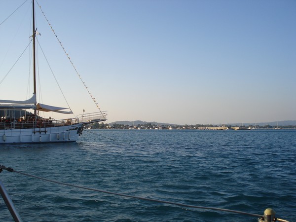 Arrivée un peu avant la nuit mais je ne sais pas où m'amarrer. Je me suis mis le long d'un quai limite douane ferries derrière moi j'ai un bateau restaurant