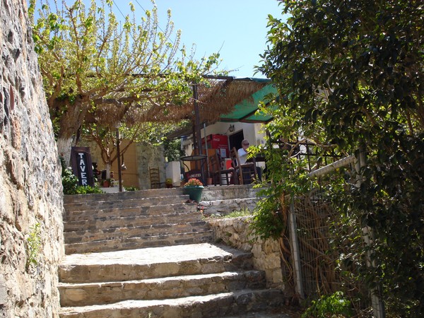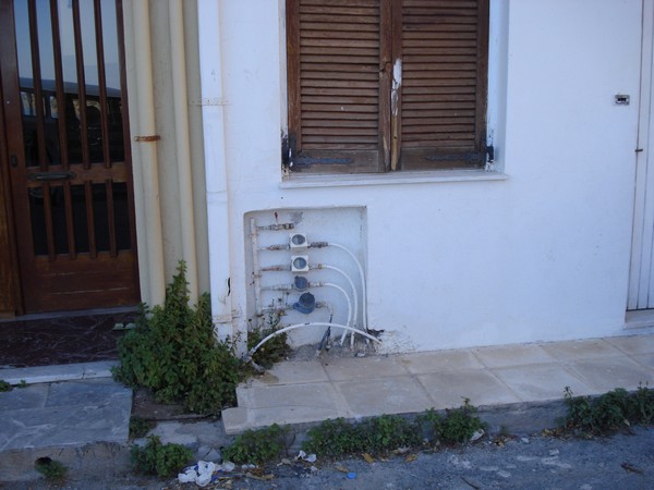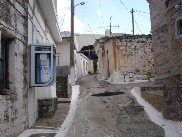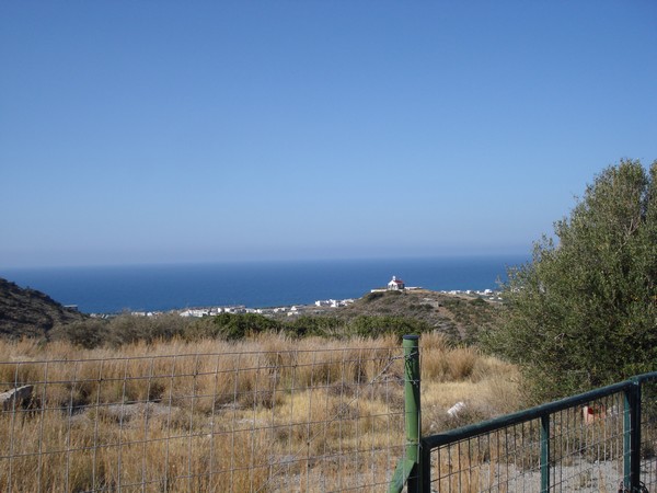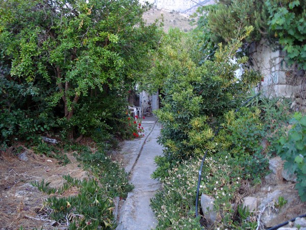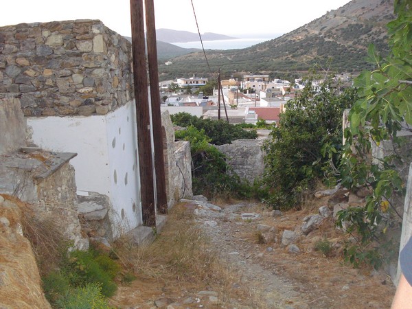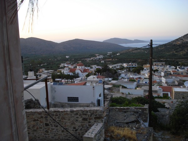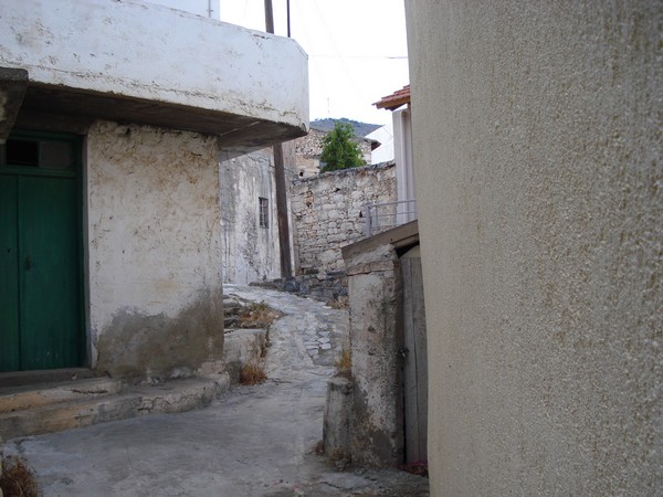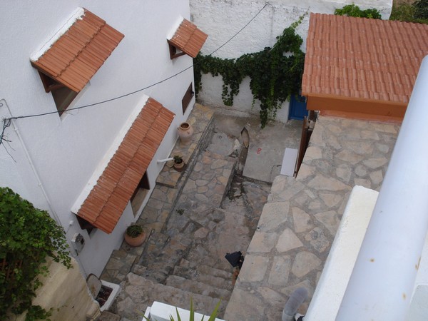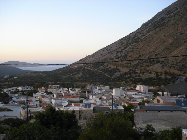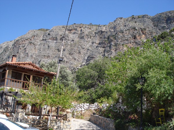 | Avec son écoulement d'eau du toit | Village de Vrahassi à 600m d'altitude, la mer au fond |