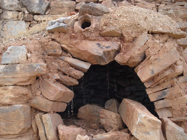 l'entrée était fermée et le trou au-dessus en poterie servait sans