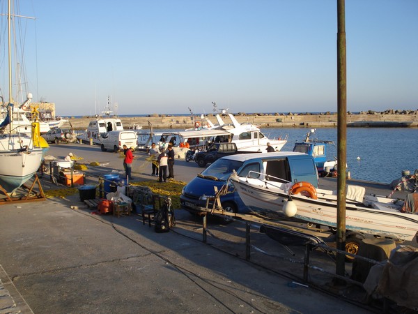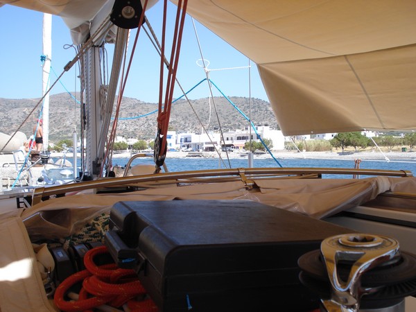 | Sur le bateau de patrick et monique avec édouard dans le petit port de Milatos, authentique port de pêcheurs |