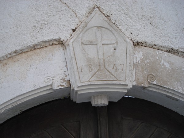 | Croix sur le manteau de porte du moulin | Les anciennes meules à écraser les olives |