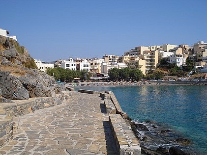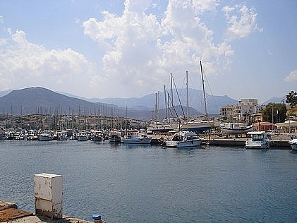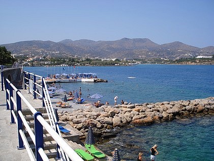 | Plusieurs criques autour de Nikolaos avec plage et aussi d'autres petits ports | plage à l'entrée du port le bateau est au fond contre la jetée |