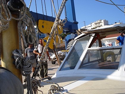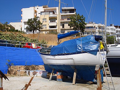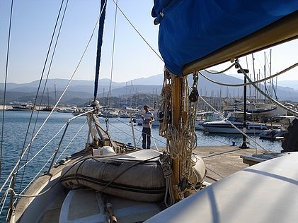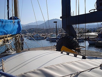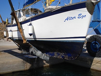 | Me voici à Nikolaos où après renseignements sur les tarifs en mouillage et à quai m'ont décidé d'arrêter mon parcours pour cette année ici. Le bateau va être sorti de l'eau pour remplacer 2 vannes, le pressé toupe de l'arbre d'hélice et celui du gouvernail et avoir des explications sur la mauvaise performance au moteur du bateau. J'ai fait essayer à 2 mécaniciens le bateau en mer mais même après sa sortie de l'eau ils n'avaient pas d'explications à me donner. J'attends des informations d'un distributeur en France de le marque de mon inverseur, en fonction de la valeur du réducteur, taille de l'hélice, poids et dimensions du bateau, puissance du moteur quelqu'un de la profession va bien avoir une idée. | |