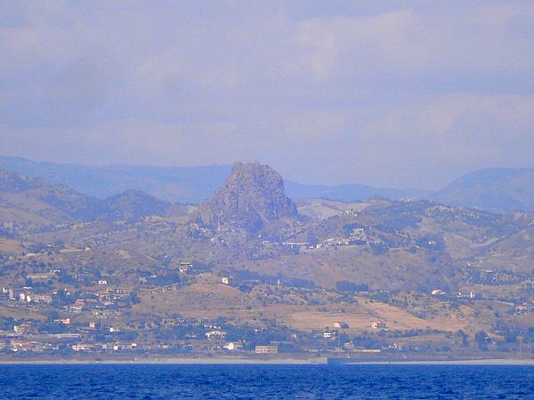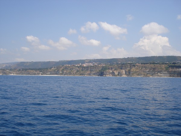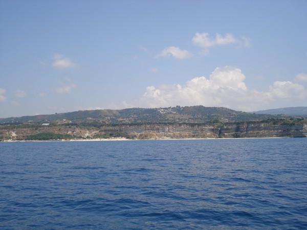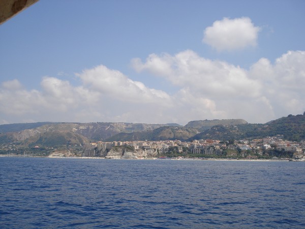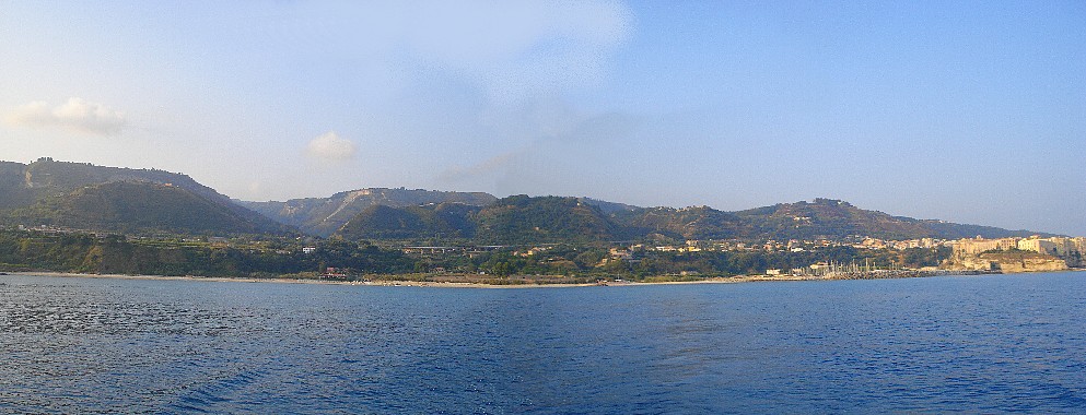 | Arrivée proche, Tropea est sur la colline tout au bout |