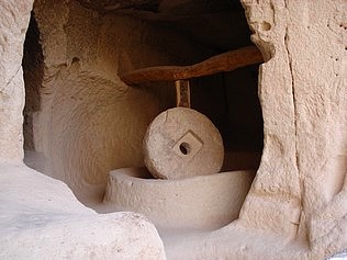 dans le tuf., des moulins pour moudre avec une meule en pierre